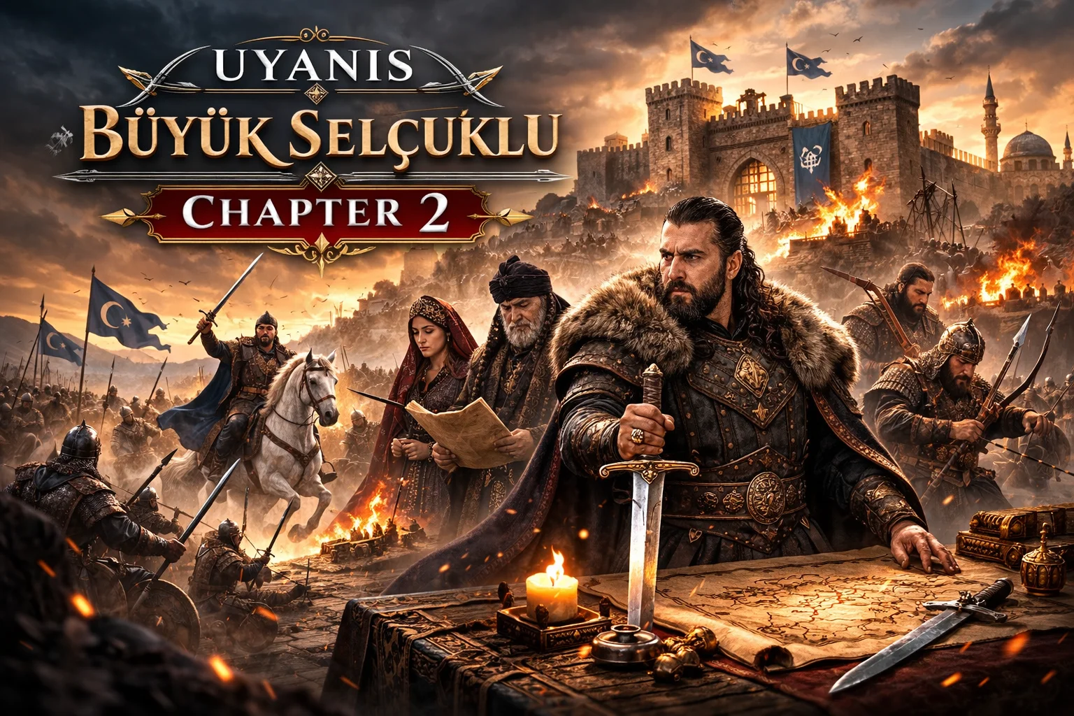 The chapter highlights the responsibilities of Sultan Melikşah as he governs a realm filled with diverse cultures, languages, and traditions. His court becomes a center of decision-making where generals, scholars, and advisors gather to shape the empire’s future. The story reflects the reality that medieval empires were not sustained by force alone but by administrative organization and intellectual leadership.